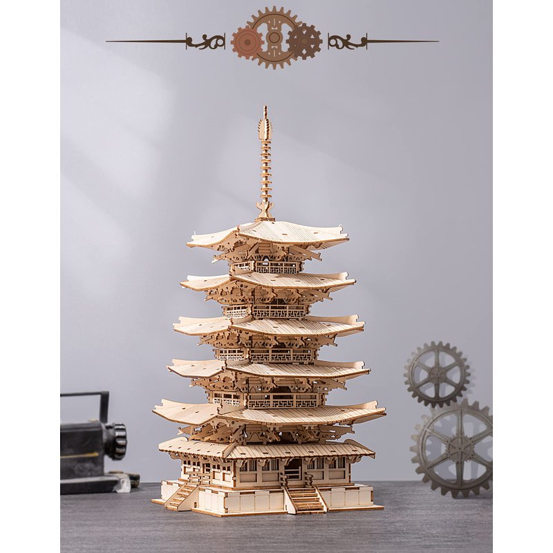 ROBOTIME 3D Puzzle Wooden Craft Kits for Adults DIY Model Building Kit Best Gift for Kids (Five-Storied Pagoda)