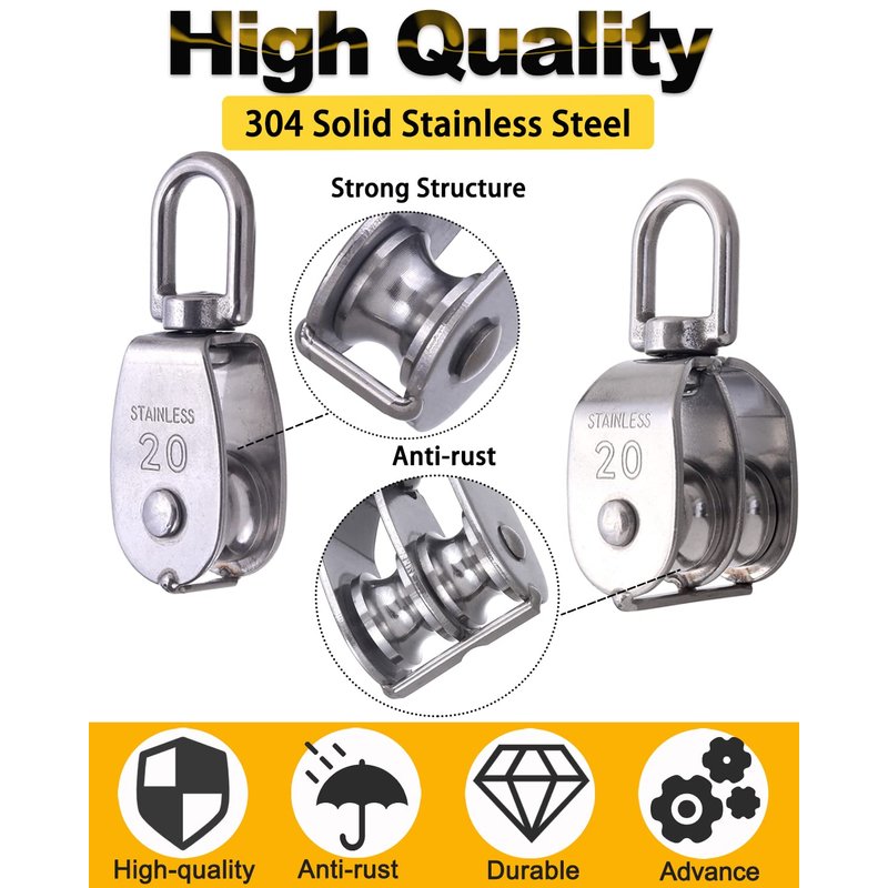 - TOP QUALITY - Made of high-quality stainless steel material, the whole pully has higher hardness, moisture resistance, corrosion resistance, rust resistance than ordinary materials. Rugged construction and shock-resistant design make it extremely rugged.