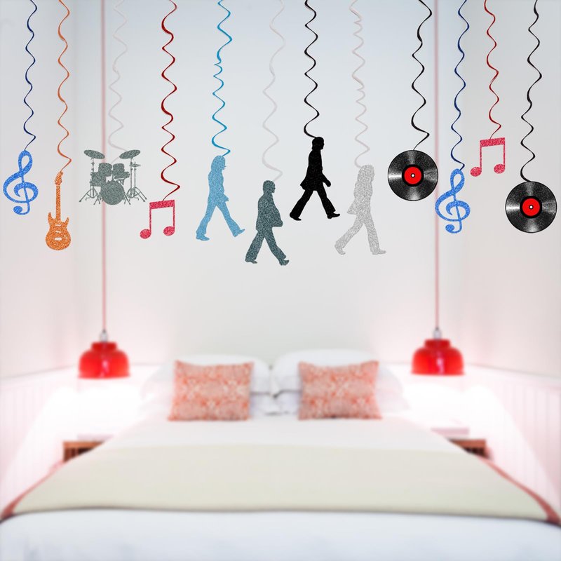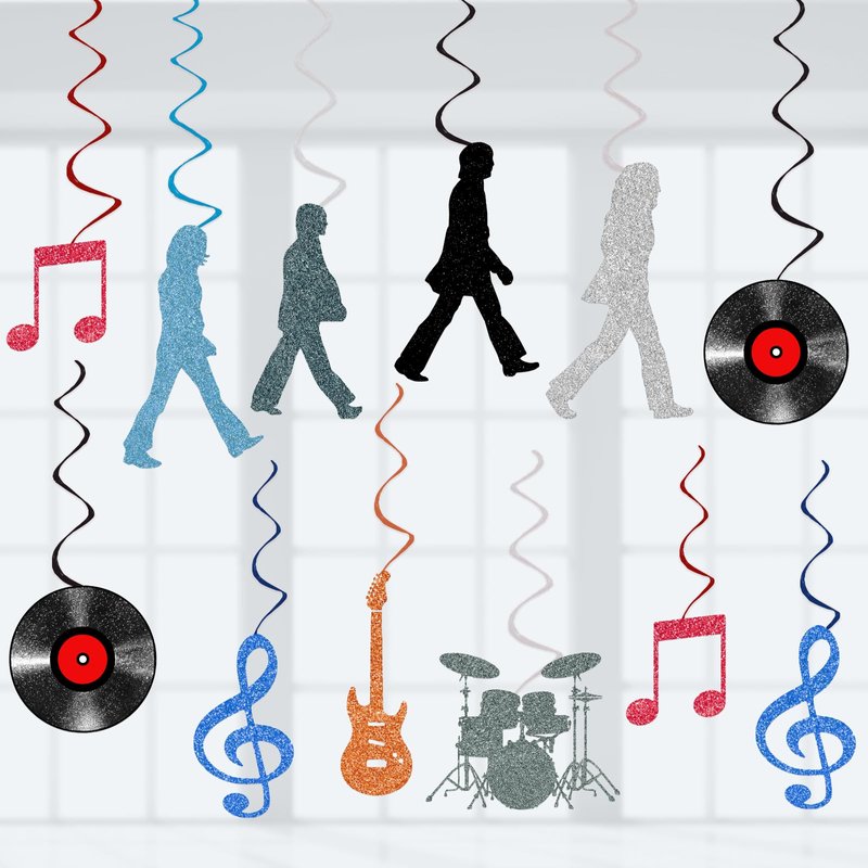 Rock and Roll Party Decorations 60s Retro Rock Music Party Streamers Hanging Swirls Decor 24Pcs Party Ceiling Decor Banner Supplies Event Birthday Party Decor