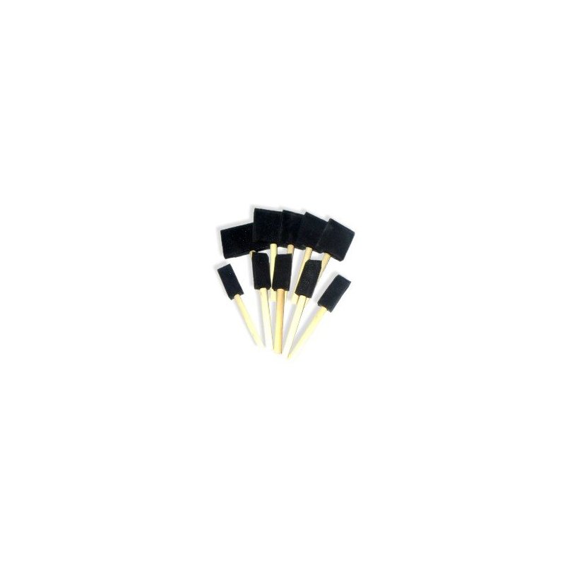 10-pc Foam Brush Disposable Set with wooden handles. Features: Versatile, inexpensive, and highly effective painting too for professionals, homeowners, and hobbyists; Real wood handles; Sizes: 5-pc. 1", 3-pc. 2", 1-pc. 3", 1-pc. 4"; Total Length: 7"