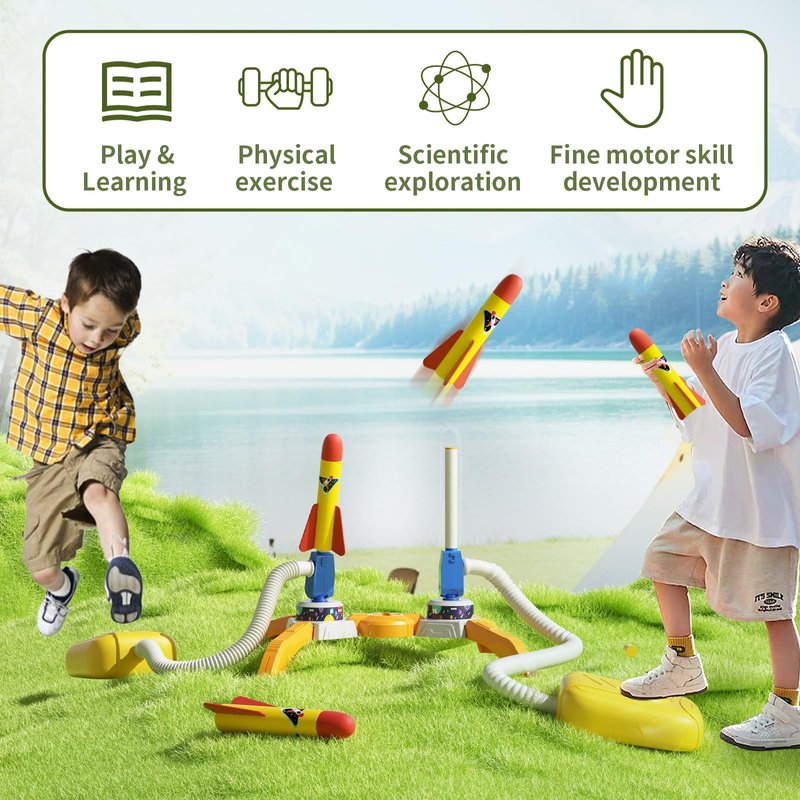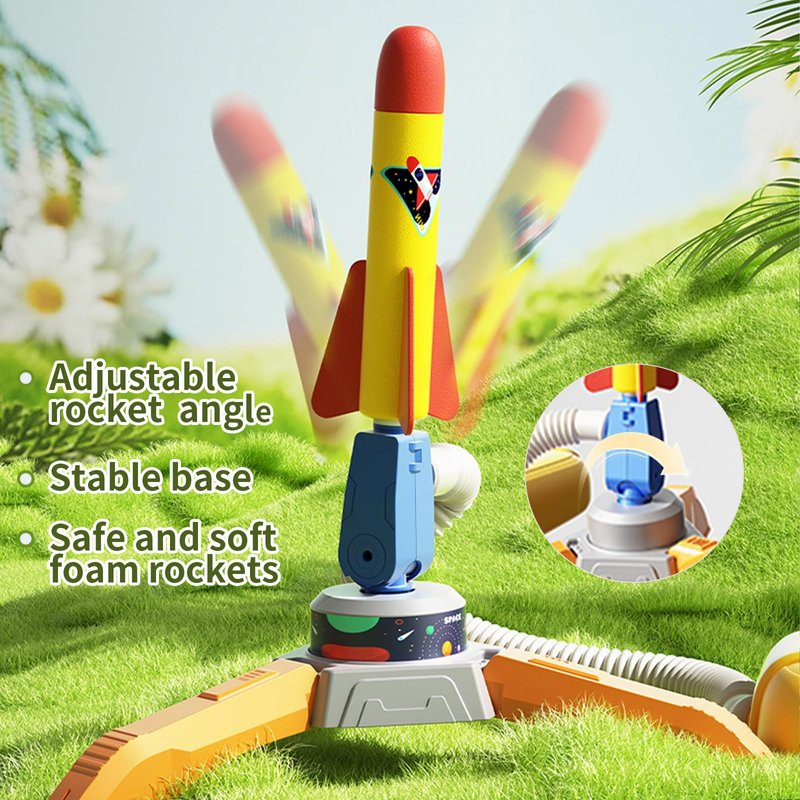 - Learn While Playing: Stimulate your child's interest in STEM subjects with our air rocket launcher kids! Kids can adjust launch angle, flight trajectory, and jump force, encouraging hands-on learning in a playful and engaging way