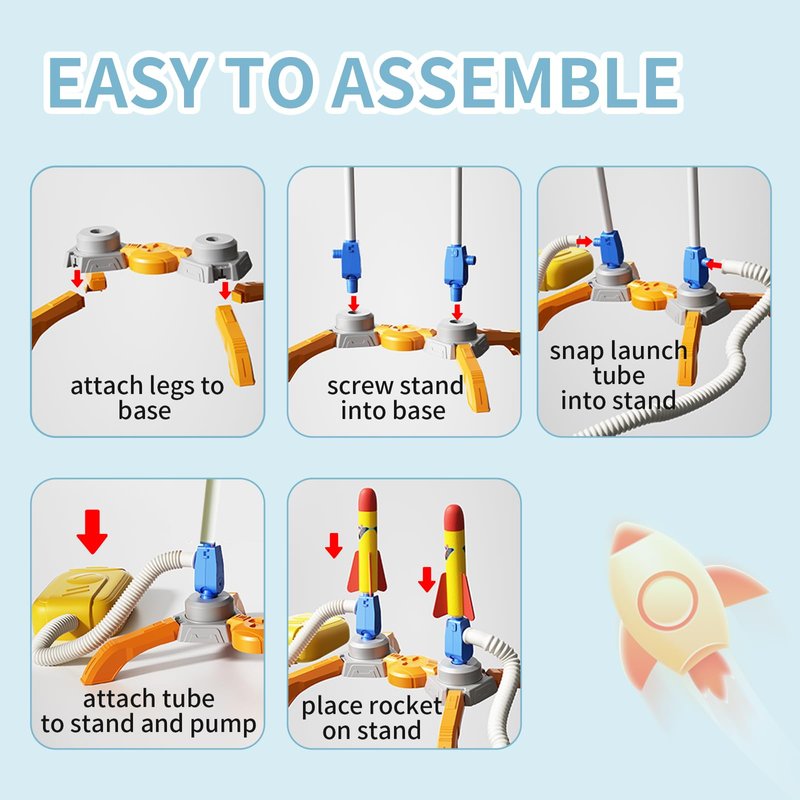 - Sturdy and Safe: Built with a sturdy base to withstand even the most enthusiastic stompers, our foam rocket launcher toy are crafted from robust, child-safe foam. These rockets are designed to resist tearing and are easy to assemble without any tools