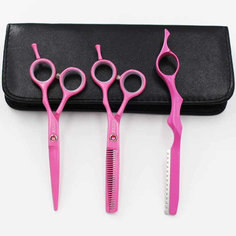 ROCOCO Professional 5.5 inch Pink Salon Hair Cutting Scissors and Hair Thinning Shears with Razor for Female Hairdresser(Pink)