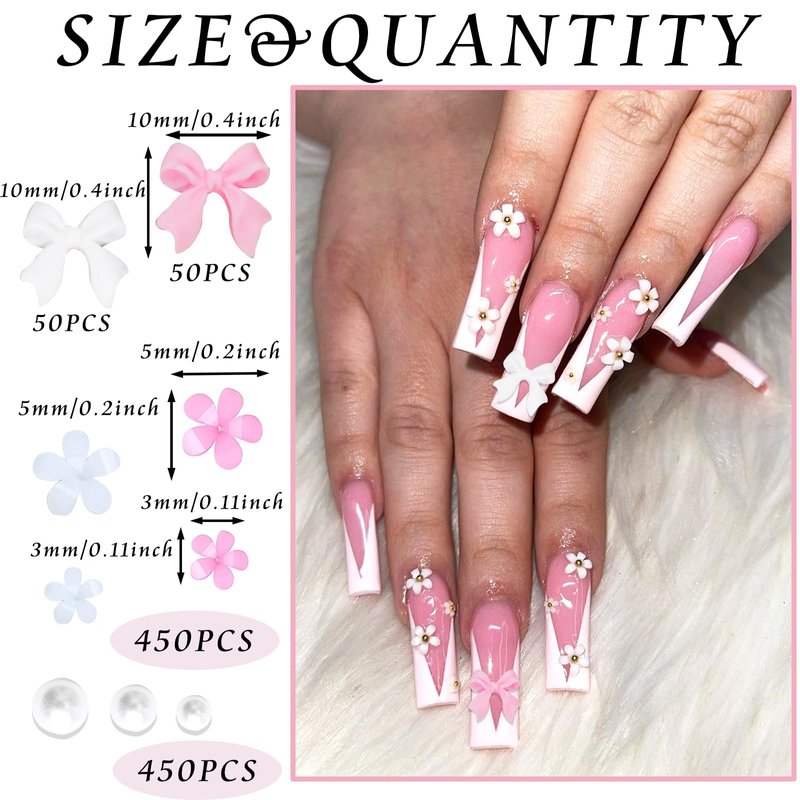 - Value Pack:You will get 1000pcs cute 3D nail charms including bowknot and blossom flower style,flatback resin pearl beads.Ample quantity can satisfy your various needs for nail art design.