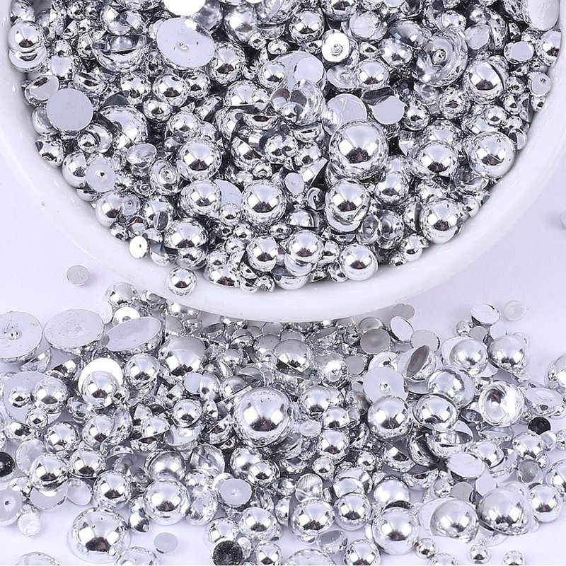 RODAKY 2000Pcs AB Silver Half Pearls for Crafts,Flatback Half Round Pearl for Nails,6 Sizes AB Silver Pearl Beads Rhinestones for Nails Art Design DIY Crafts Jewelry Making Clothe Shoes Decoration