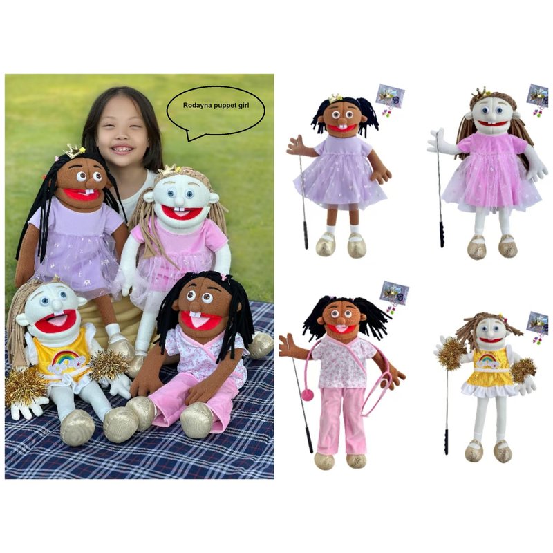 - Size:Rodayna Girl, a cute hand puppet with two front teeth, is about 25x12x10 inches(LxWxH) from head to toet. Its head with10 inches wide is specially enlarged for interacting with your child.Easy to move mouth and arms. Hand entry through the bottom of the puppet.