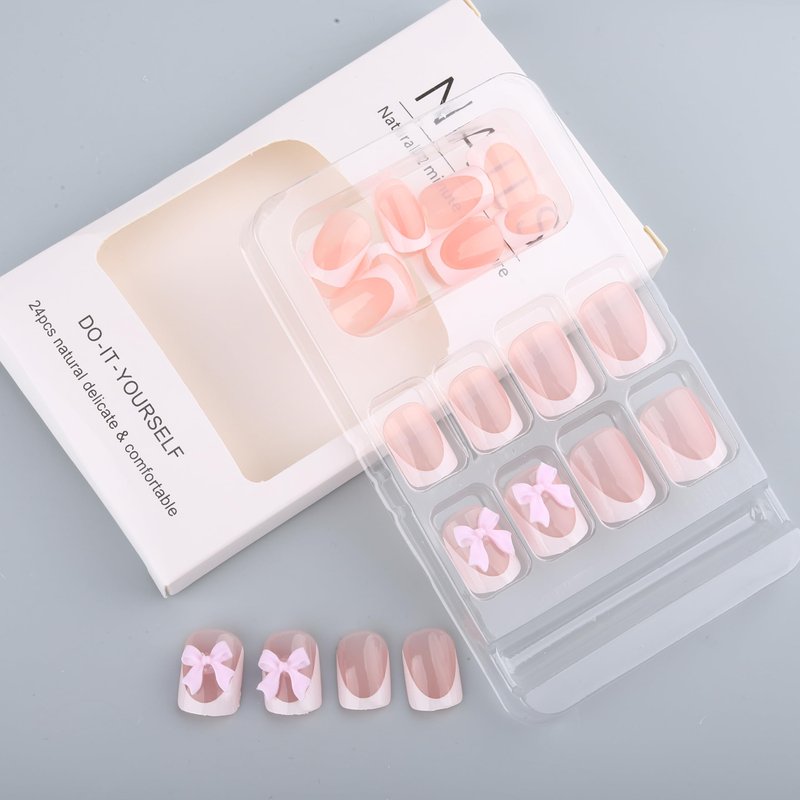 - 【10 Minutes Nails at Home】We ROFIBUT have unique pink bow designs and highest quality nails. You can make yourself a nail art in a few minutes at home with our product. Come and get enjoy with ROFIBUT Nails.