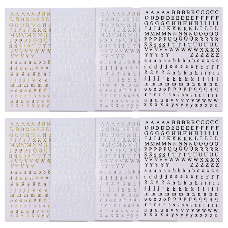 ROFIBUT Letters Nail Art Stickers English Alphabet Nail Decals 3D Self-Adhesive Metallic Gold Silver Nail Sticker Black Alphabet Nail Art Supplies for Women Girls DIY Nail Decoration Manicure 8 Sheets