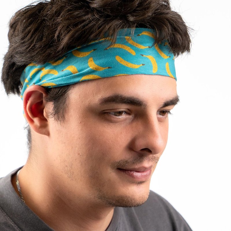 RokBAND Multi-Functional Food Themed Neck Gaiter or Headband | Banana Pattern | Blue