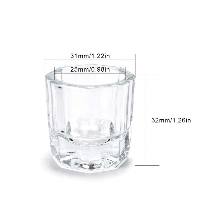Rolabling Glass Crystal Dappen Dish Nail Art Acrylic Powder Holder Liquid Cup for Manicure Tools(2 pcs no lid)