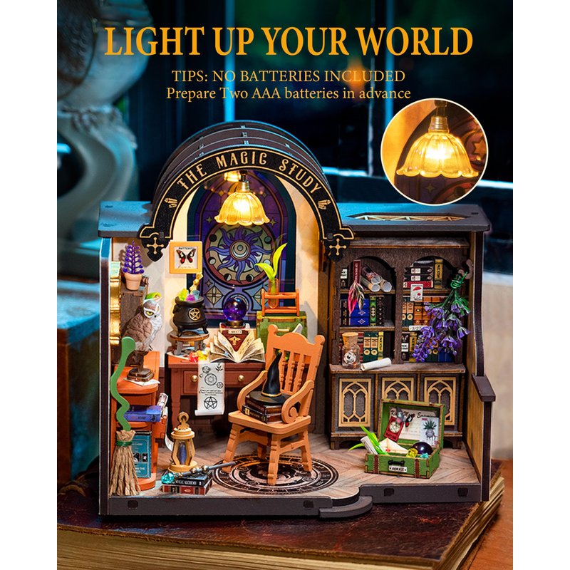 - 【Rolife's New Creation】This miniature house kit combines mystery and fantasy, complete with a messenger owl, time-reversing crystal ball, and secret-unraveling book. Become a wizard and enjoy the joy of assembling this magical abode. Let your imagination run wild in this delightful adventure.