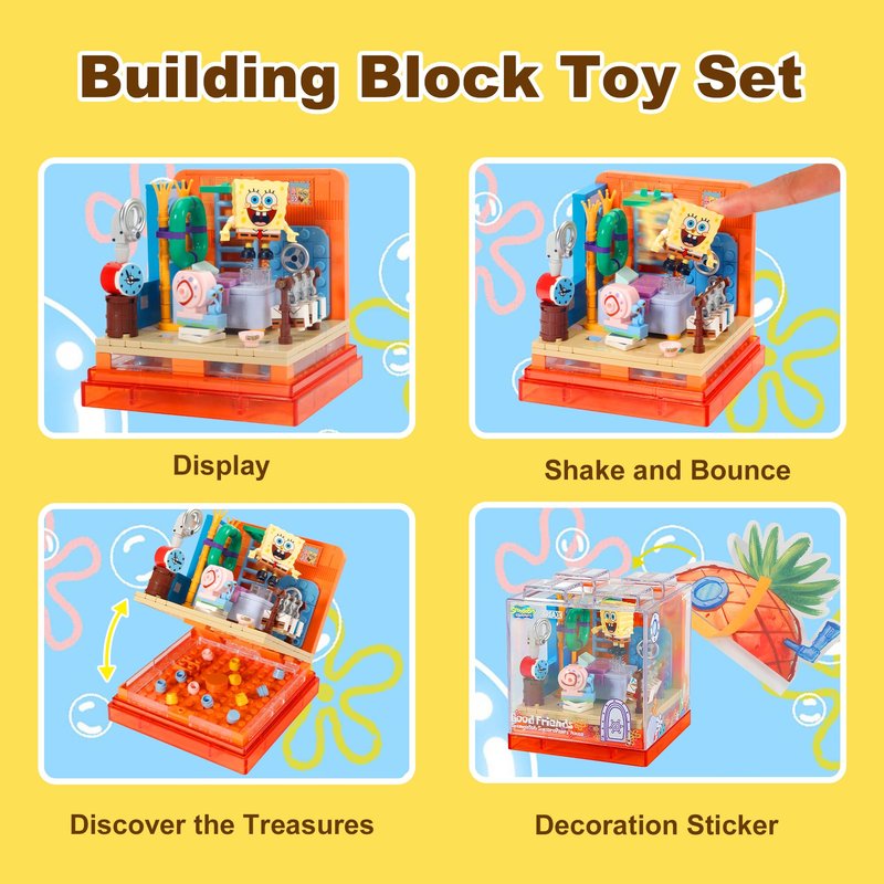 ROLOSO Sponge Squarepants Toy Building Brick Blocks Toys Sets 296 pcs Box kit Action Figures Pineapple House Patrick Stone Star Home for Creative Boys and Girls Fans Great Gift STEM