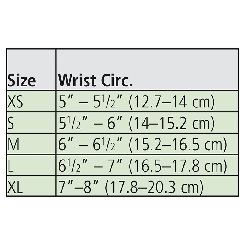 - Thumb support is fitted for the right thumb and a size of medium with a wrist circumference of 6" – 6-1/2" (15.2–16.5 cm)