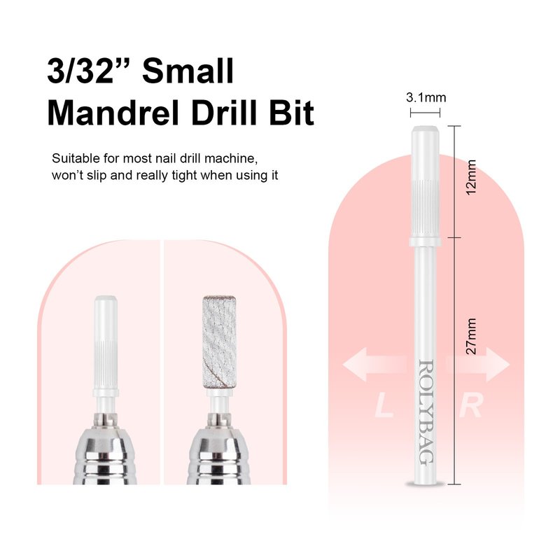 - Easy to Use: The small mandrel bits are suitable for most 3/32" nail drill machines. Select asmall sanding band nail drill bit in place over the small mandrel bit and gently apply pressure to the surface of the bed. Provide a friendly and easy-to-use nail care experience!