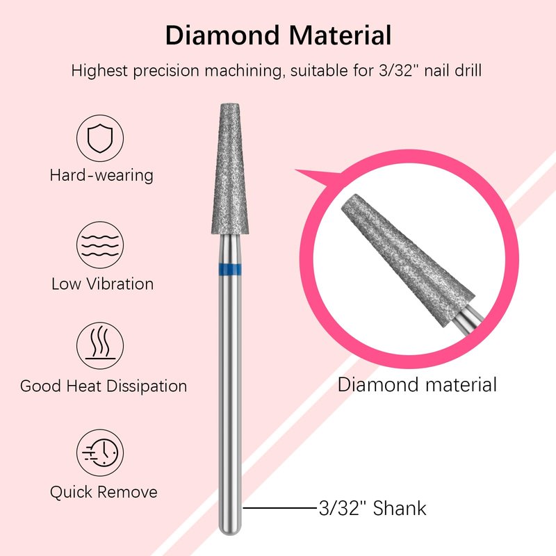 - Professional Diamond Nail Drill Bit: Made of quality carbide diamond materials, hard-wearing and excellent heat dissipation, low vibration, remove dead skin and cuticles without pain or irritation, whether you are a nail technician or prefer to do your nails at home, this nail art drill will be your perfect manicure preparation tool
