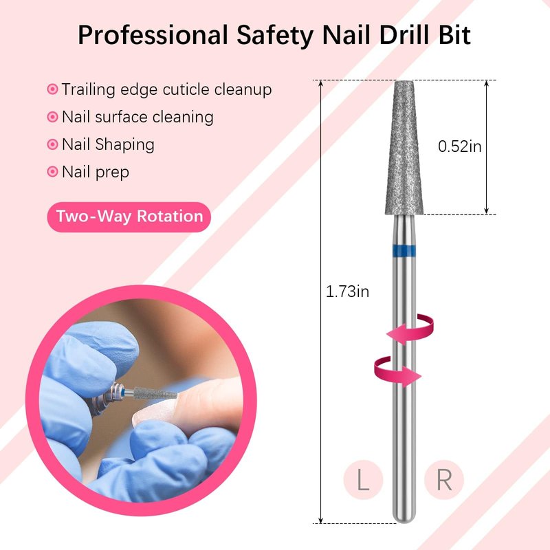 - Safety Cuticle Bit: Suitable for cleaning nail edges, pushing up and removing cuticles, removing dead skin around nails without damaging the natural nails, quick cleaning the skin under nails and nail preparation, ideal nail care tool for professional nail technician or beginner