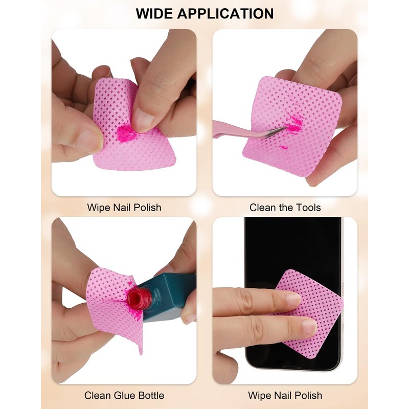 - Strong Absorption: Lint free wipes are absorbent and anti-static, keeping them clean, tidy and residue-free, can be used as nail wipes to clean nails and wipe glue from eyelash extensions, bringing your customers a powerful and advanced body.