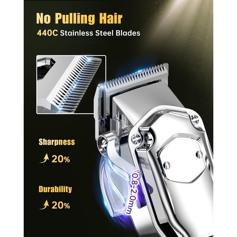 - All In One Clippers and Trimmers Set : Our professional hair clippers kit are designed specifically for home users with precise cuts, and we cooperation with families around the world , easy to use. It can easily trim fading,blending,art carving,sideburns,edges and hair cutting.Give you a perfect grooming experience like in a hair salon.Also suitable for barbershop