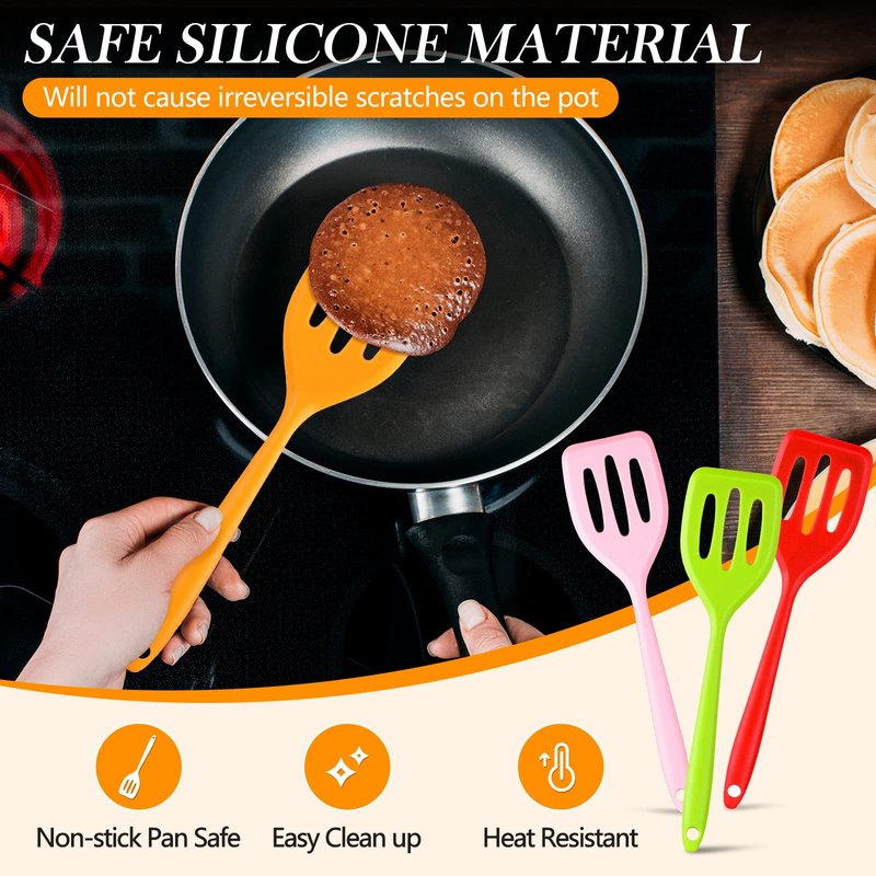 - Proper Size: the silicone slotted turners are approx. 22 x 5.5 cm/ 8.66 x 2.17 inches, proper in size and light in weight, will not take up too much space to store, the right size is easy for you to hold