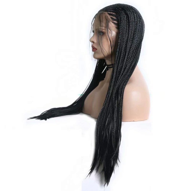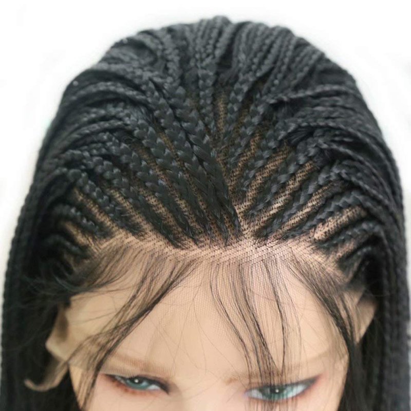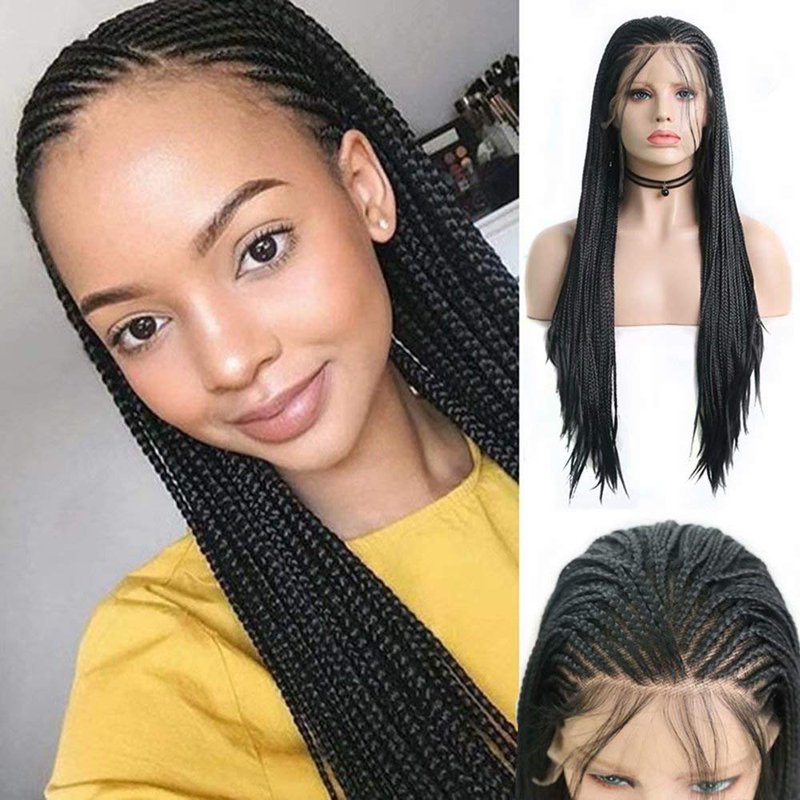 RONGDUOYI RDY 24 Inches Black Braided Lace Front Wigs for Black Women Natural Hairline Synthetic Wig Pre Plucked Glueless Braids Wig (180% Density,Style1)