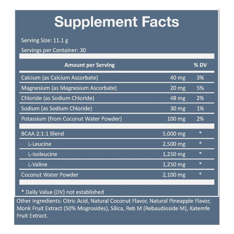 - Sunflower fermented BCAA's and the right ratio of electrolytes in the quantity your body needs for optimal hydration and performance, and 0g of sugar!