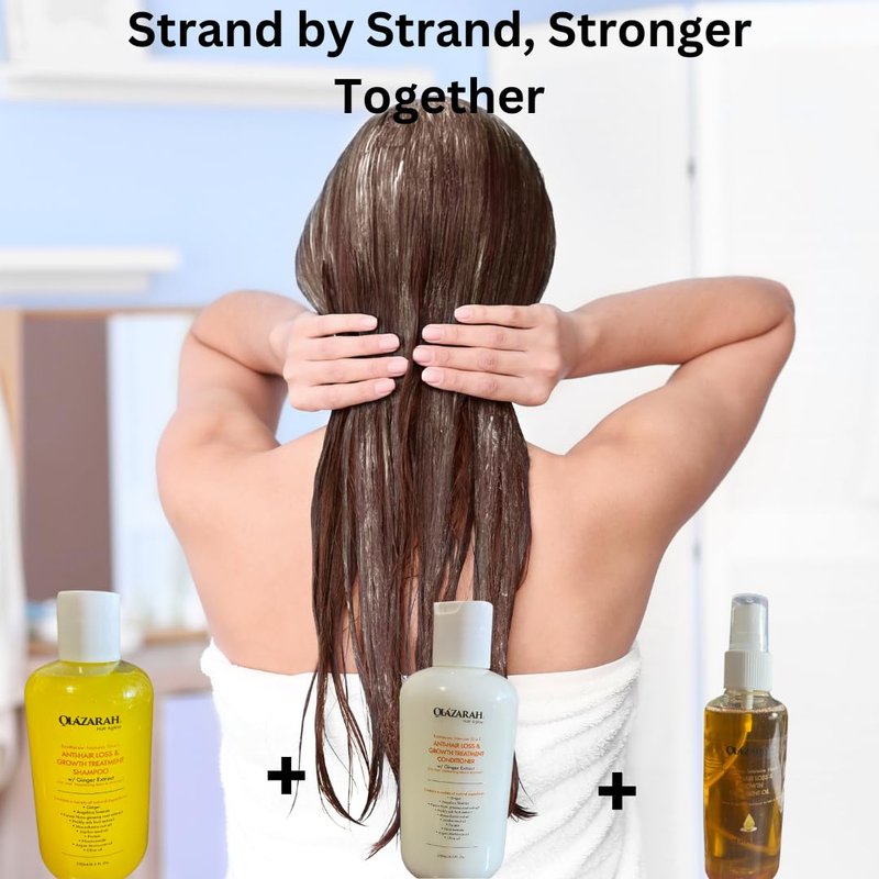 RootRenew Intensive Hair Care Set: 10-in-1 Anti-Hair Loss & Growth Treatment - Shampoo, Conditioner, and Oil Infused with Ginger Extract (8 Fl. oz, 8 Fl. oz, 4 Fl. oz) for Men & Women