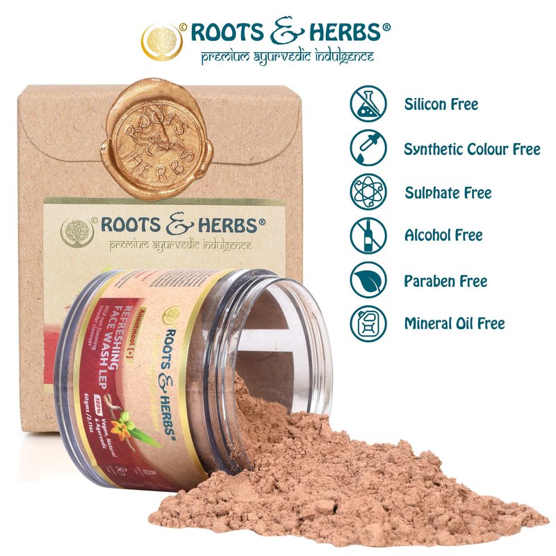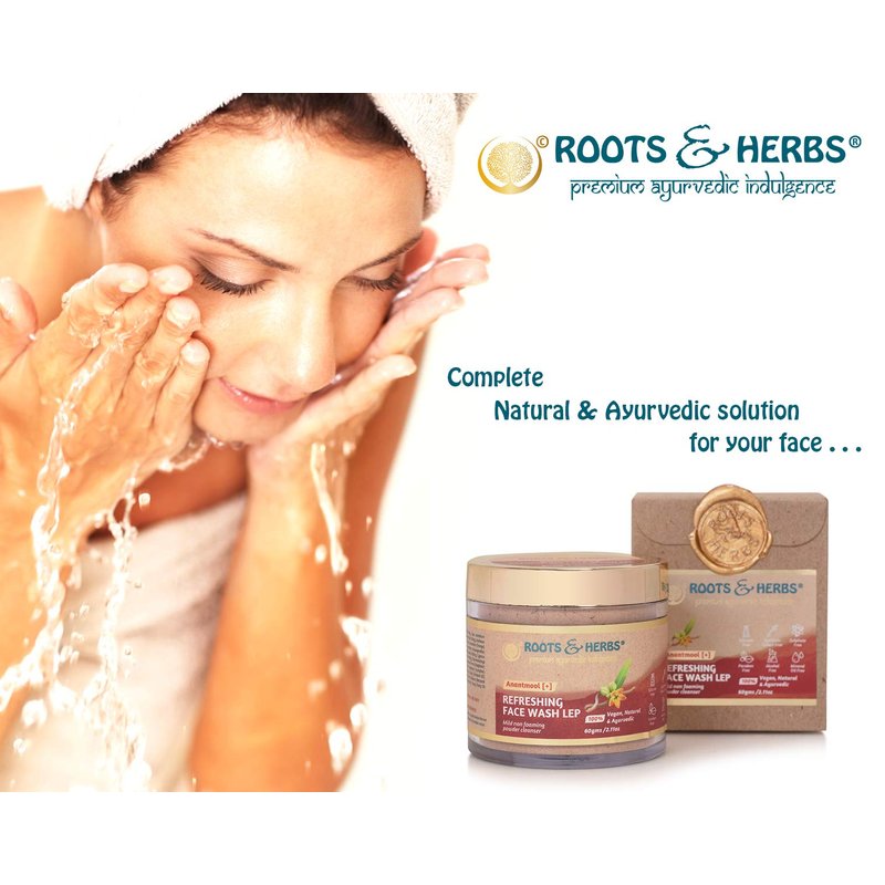ROOTS AND HERBS Ayurvedic Face Wash Lep Natural Treatment 100% Vegan Anantmool Refreshing Face Wash Non-Forming Facial Cleanser - 2.11oz