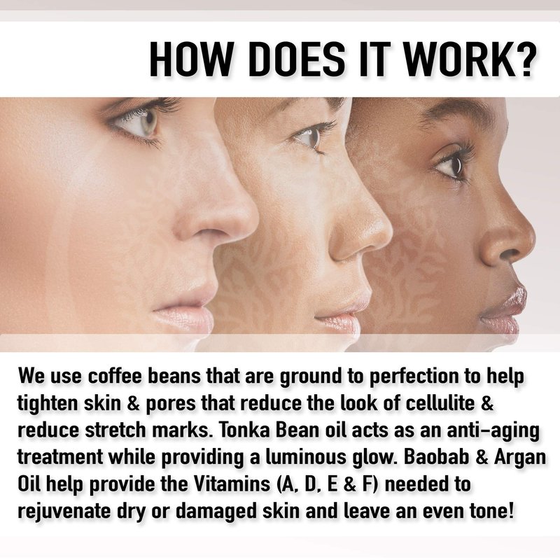 ROOTS AND HERBS Crushed Coffee and Tonka Beans -Exfoliating Body Scrubs for Men & Women - Face Scrub,Foot Scrub Dark Spots, Brightening Inner Thighs Bikini Area Underarms, Butt Scrub Exfoliator