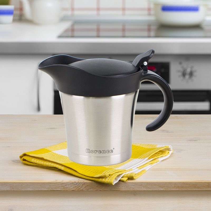 We have combined functionality and style into this modern gravy jug. Rorence insulated gravy boat must be a fabulous addition to any table! Compared with traditional gravy boat, Rorence Gravy Jug has a better insulation function based on double insulated wall design. That's enough to keep the contents warm for at least an hour. Much better than an open gravy boat in any case.