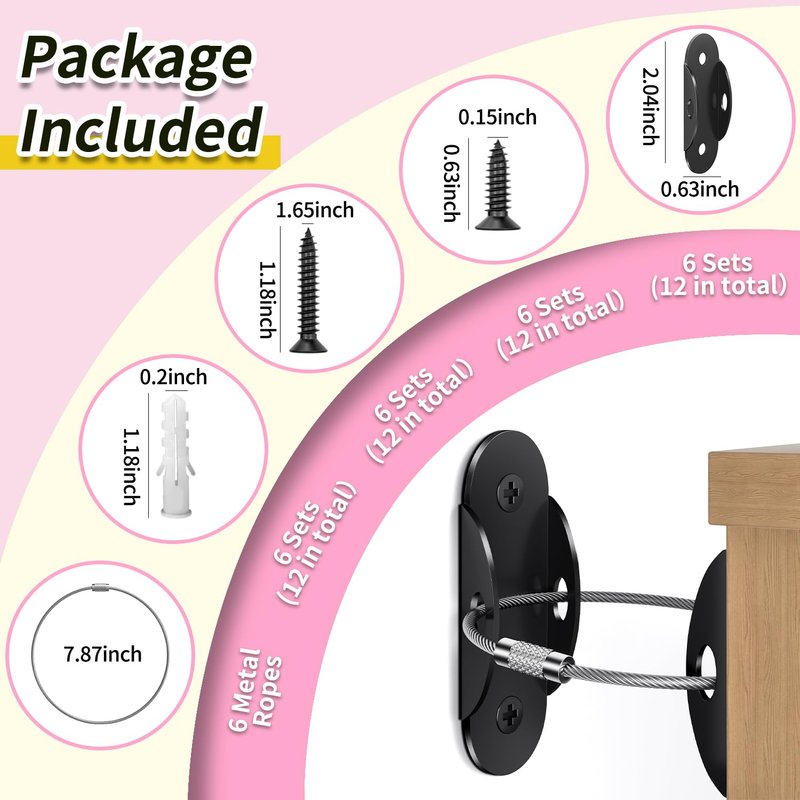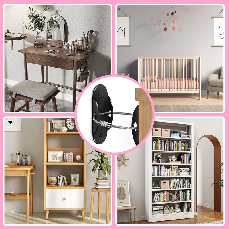 - Versatile Protection: Safeguard your space by anchoring furniture items such as bookcases, dressers, cabinets and wardrobes to the wall, effectively reducing incidents with curious toddlers. The detachable anti-tip anchor offers flexibility, allowing easy removal for cleaning or furniture repositioning.