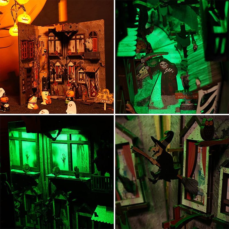Roroom DIY Miniature and Furniture Dollhouse Kit,Mini 3D Wooden Doll House Craft Model with LED,Creative Room Idea for Halloween Birthday Gift(Spooky Alley)