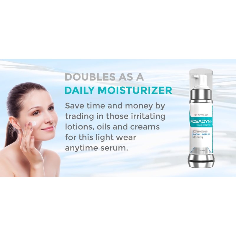 Revitalize Your Skin Without Irritation Don’t settle for anti aging products that irritate your sensitive skin or make your rosacea symptom like facial redness worse. Unfortunately, many rosacea creams, rosacea skin care products and especially many of the best anti-aging serums can actually worsen your skin and make you want to hide your face. Introducing Rosadyn Reparative Serum After years of success with Rosadyn; our natural rosacea supplement that targets the root cause of your rosacea symptom; we decided to expand our product line to include a soothing anti aging serum that actually reduces your facial redness and strengthens your skin, reducing its sensitivity. This revolutionary facial redness reducer contains a synergistic blend of ingredients clinically proven to calm skin, reduce signs of aging and diminish redness. Cutting Edge, Premium Ingredients at Affordable PriceFlawless skin shouldn't have to cost you a fortune. Our serum is packed with the latest cutting edge, premium all natural and organic ingredients at an affordable price. We also eliminated common skin irritants like phthalates, parabens, sulfates, added fragrances, and petroleum. Start loving your sensitive skin again with our fast penetrating, silky, lightweight moisturizing facial serum.