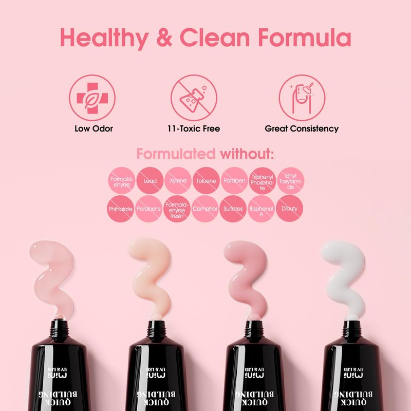 - Warm Tips: It is common for gels to be sticky. so dipping you brush into the gel solution will help you push the gel more smoothly. Or you can seal the gel tube and soak it in warm water before use, which will make it more fluid and help you squeeze out the poly nai gel more smoothly. Both sides of the nail need LED light or UV light to cure for about 120s to completely dry. The lighting time needed depends on the thickness of the gel.