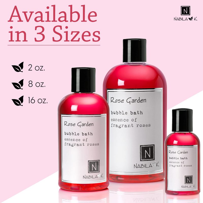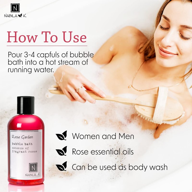 Rose Garden Bubble Bath by Nabila K - Essential Oils with Natural Ingredients for Sensitive Skin, Tear-Free, Gentle, Moisturizing - Luxury for Women & Men, 8 oz