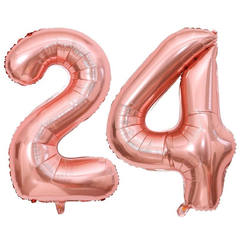 - 【High Quality Material】These Rose Gold number 24 balloons are made of thickened Grade A quality Foil material, which makes them more durable and prevents breakage. Self-sealing,just pull out the straw after the inflation is completed. These number 24 balloons with a stylish and classic appearance, bright colors and can be reused.