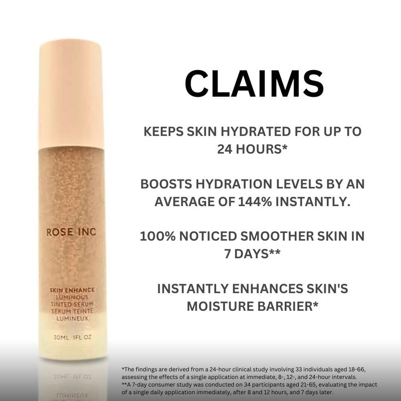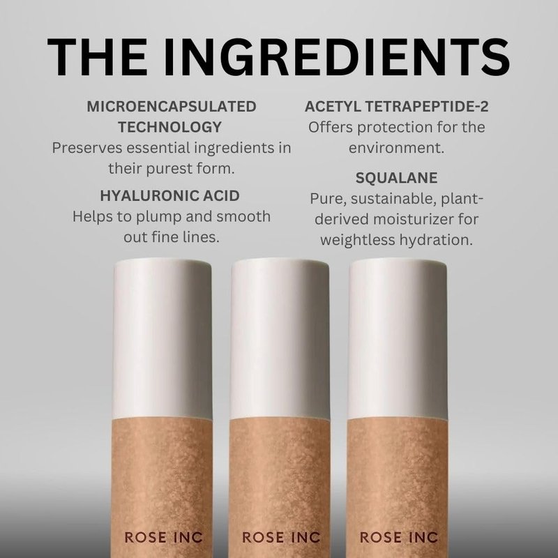 - SKIN-ENHANCING FORMULA: ROSE INC Skin Enhance Non-Comedogenic Skin Tint Serum Foundation is Infused with Sodium Hyaluronate, Squalane, and Acetyl Tetrapeptide-2 that plumps, smooths, and protects the skin while delivering a weightless, sheer finish.