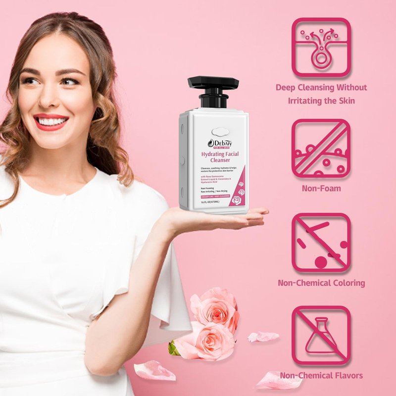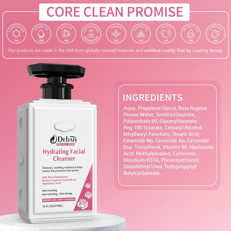 Rose Non Foaming Hydrating Facial Cleanser with Ceramide Face Wash for Family, Makeup Remover for Women Gentle Hydration & Purification (16 FL OZ)