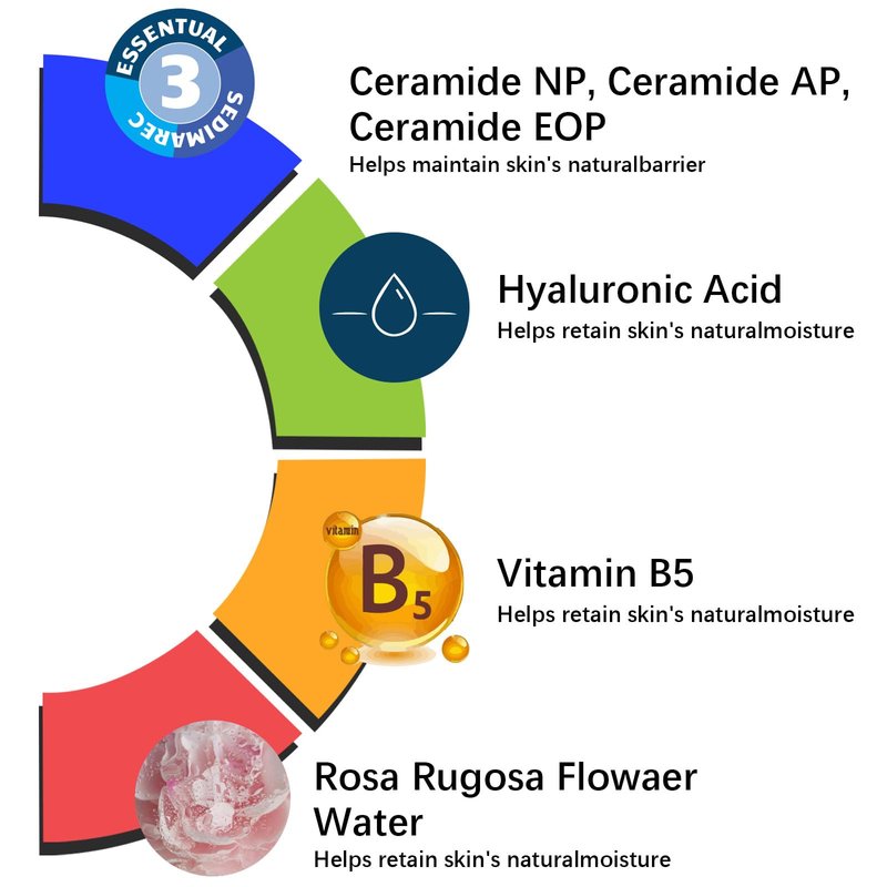 - Contains three essential Ceramides (NP, AP, EOP) that help restore and maintain the skin's natural barrier