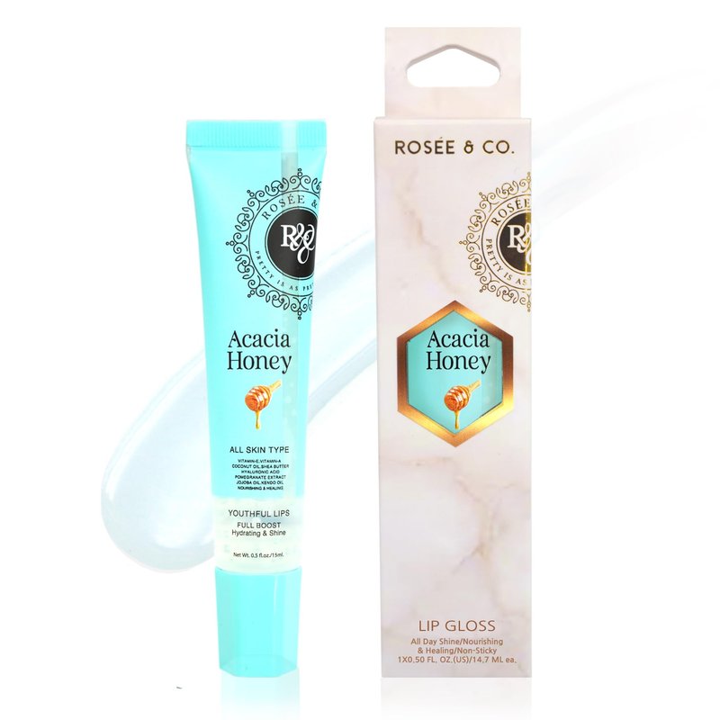 ROSÉE & CO Rosee Lip Gloss Vegan & Cruelty Free Treatment, Long Lasting Glossy with Shea Butter, Moisturize, Protect & Smooth - Acacia Honey