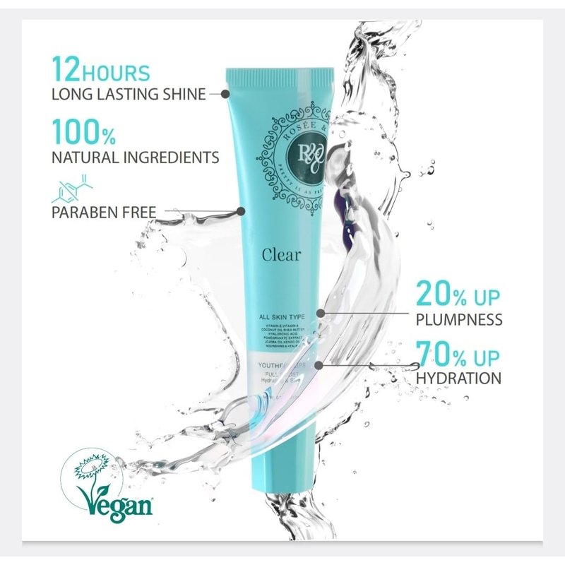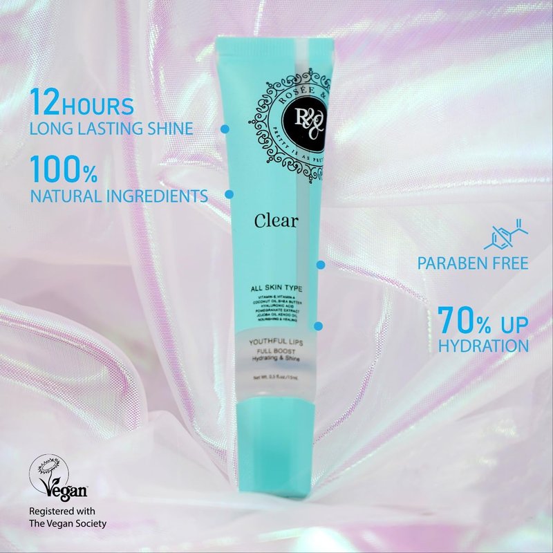 Rosee Lip Gloss Vegan & Cruelty Free Treatment, Long Lasting Glossy with Shea Butter, Moisturize, Protect & Smooth - Clear