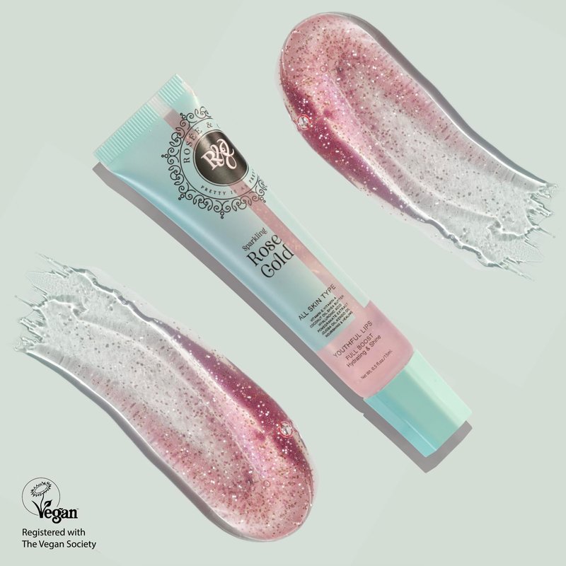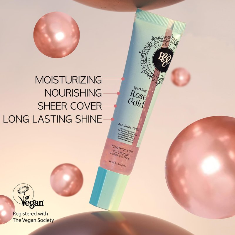 ROSÉE & CO Rosee Lip Gloss Vegan & Cruelty Free Treatment, Long Lasting Glossy with Shea Butter, Moisturize, Protect & Smooth - Clear (f.Sparkling Rose Gold)