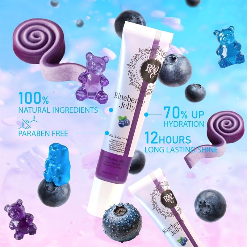 ROSÉE & CO Rosee Lip Gloss Vegan & Cruelty Free Treatment, Long Lasting Glossy with Shea Butter, Moisturize, Protect & Smooth - Clear (l.Blueberry Jelly)