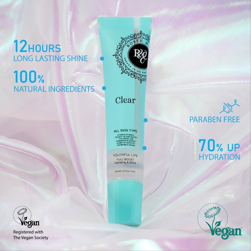 Rosee Lip Gloss Vegan & Cruelty Free Treatment, Long Lasting Glossy with Shea Butter, Moisturize, Protect & Smooth - Clear