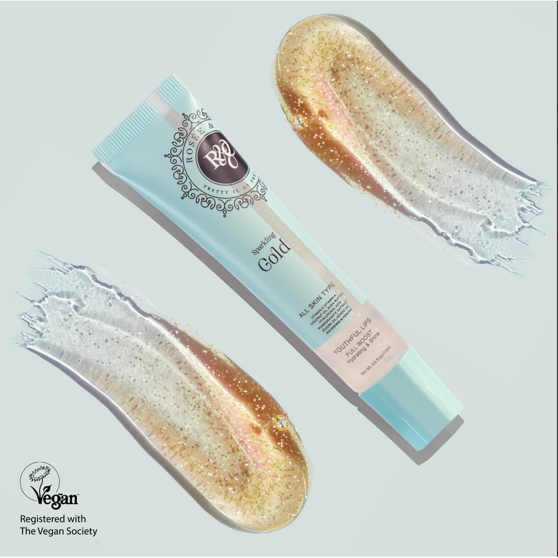 Rosee Lip Gloss Vegan & Cruelty Free Treatment, Long Lasting Glossy with Shea Butter, Moisturize, Protect & Smooth - Clear (e.Sparkling Gold)