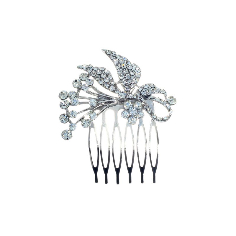 - Varying size round cut glass crystals make up this stunning ribbon design attached to a silver tone metal comb