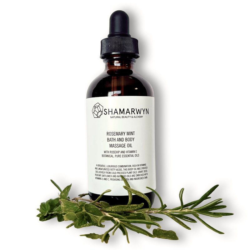 Rosemary Mint Body Oil | Natural Organic Bath & Massage Moisturizer with Rosehip & Vitamin E | 4oz