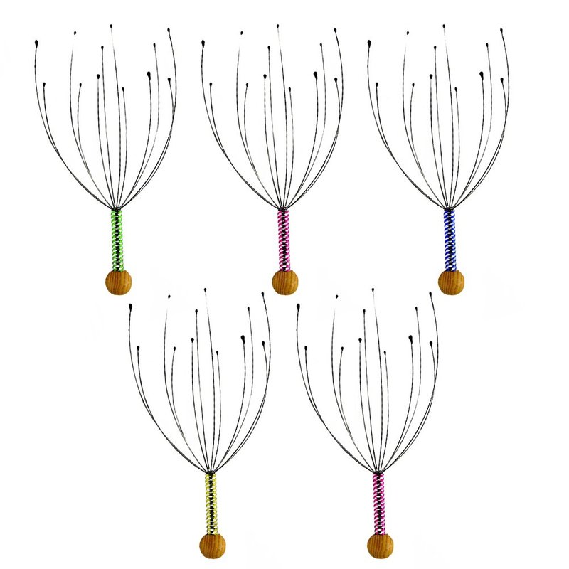 ROSENICE Scalp Massager 5pcs Hand Held Therapeutic Head Scratcher Steel Wire Head Massager with Wooden Handle for Home Spa Relief and Relaxation