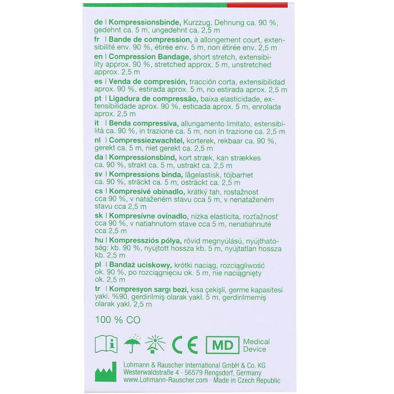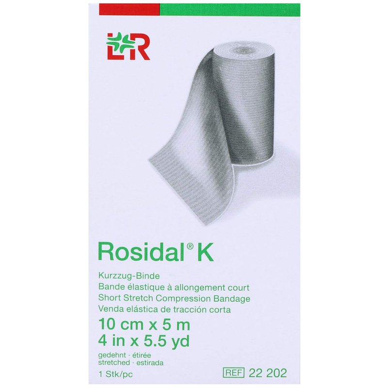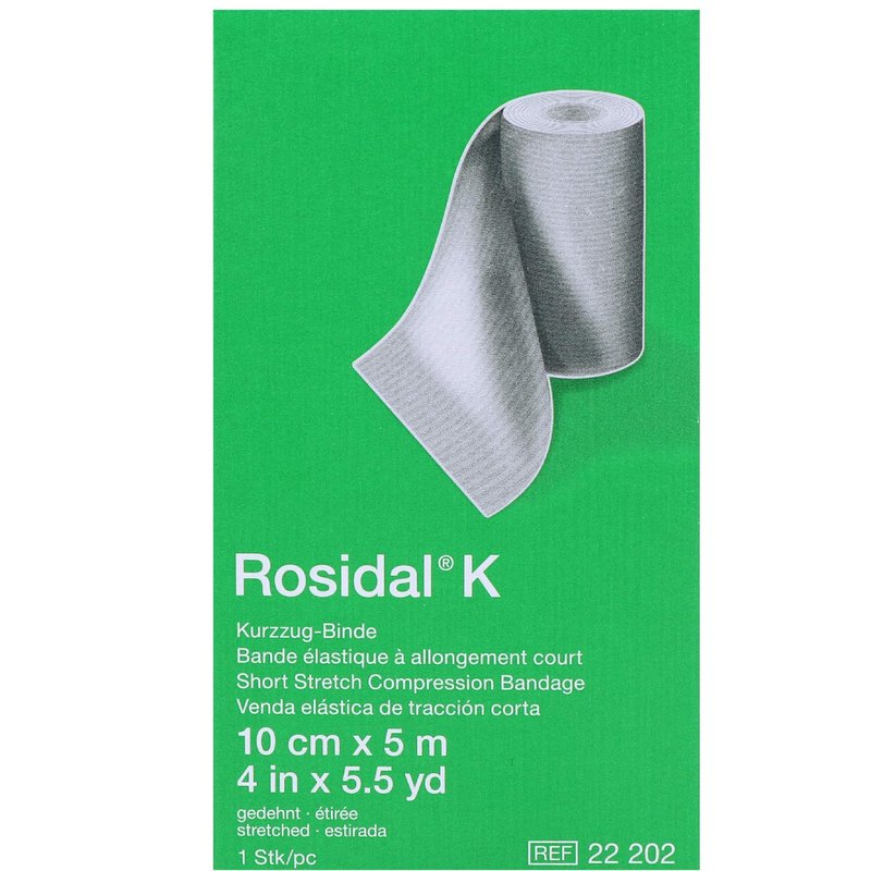 Rosidal K Short-Stretch Compression Bandage has high compressive power and durable elasticity; for strong compression of the extremities in phlebology as well as for the treatment of acute and chronic lymphedema; for support and relief in traumatology and sports medicine. The bandage is breathable and well tolerated by the skin. The firm grip fabric texture ensures that the bandage layers hold securely.