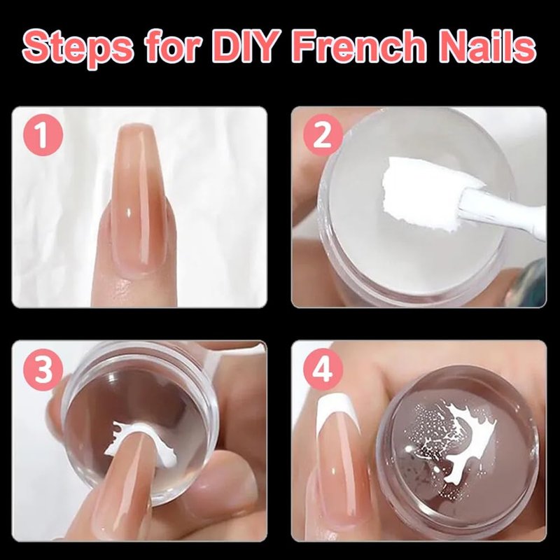- ➤【Easy French Tip Nail Tool】Have you ever struggled with not having the inspiration for a French nails and not knowing how to use tools like nail brushes and nail guide strips stickers to paint on acrylic nail tips? This silicone nail stamp easy french tip nail tool is a starter kit for beginners, it can help you get beautiful french nail effect in a few minutes, saving you time and money.