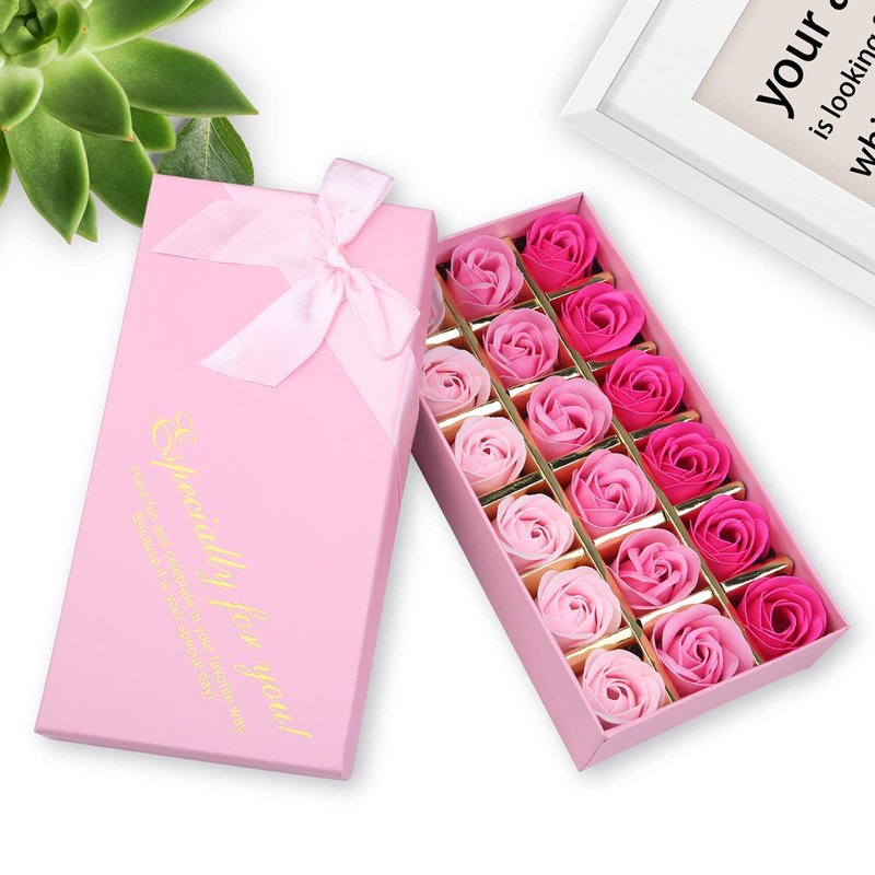 - PACKAGE INCLUDED: 18 PCS gradient pink rose soaps in a lovely gift box. These rose soaps are handmade, non-irritant, non-toxic, environmentally friendly. Made of special soap to ensure that the roses are not easy to squished during transportation, and the soap may not dissolve in water easily.